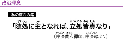 地方独自の施策を実現させ、地方から元気になり国を引っぱっていくことが理想であり、私が目指す政治であります。