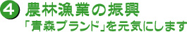食の安全の確保を進めるため、国民的な世論として、国内農林漁業の活性化が求められています。そうした状況の中で、青森県においても攻めの農林漁業を展開し、安全で品質の良い、優れた県産品の良さを積極的にアピールしていくことが重要です。